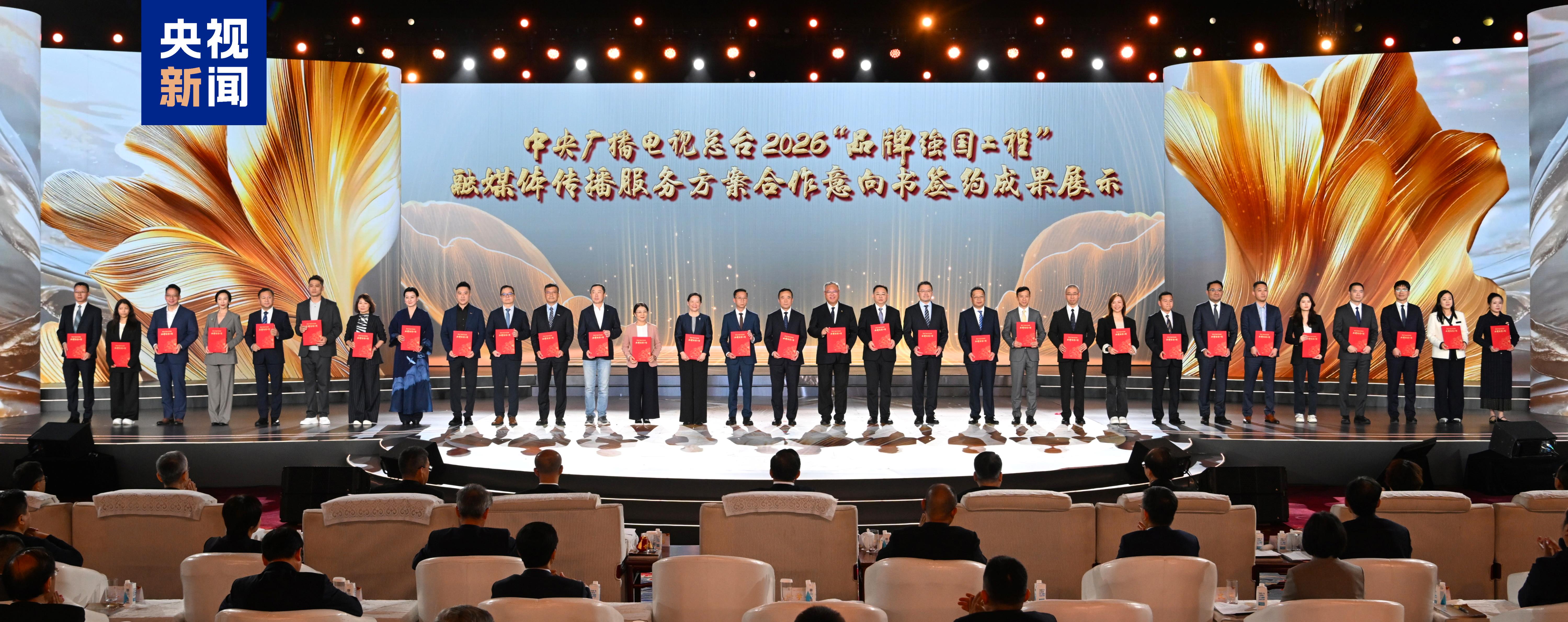 中央广播电视总台总经理室与辽宁省委宣传部、山东省委宣传部,以及中粮、茅台、工商银行、农业银行、中国邮政、益海嘉里、郎酒、长安汽车、蓝月亮、华为、小米、吉利、习酒、华强方特、赛力斯、君乐宝、鲁花、淘天、京东、伊利、荣耀、拼多多、牧原、格力、飞鹤、东阿阿胶、海澜之家、招商局等企业签订了2026“品牌强国工程”融媒体传播服务方案合作意向书,携手构建全方位、高价值的合作生态。