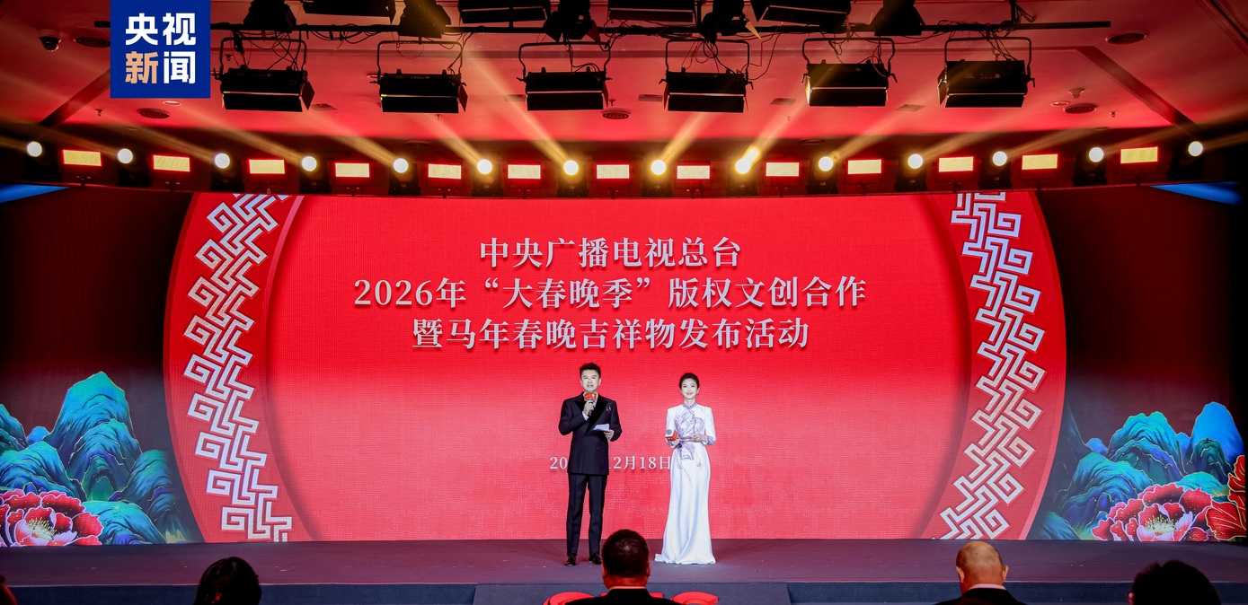 12月18日,中央广播电视总台2026年“大春晚季”版权文创合作暨马年春晚吉祥物发布活动在北京举行。中央广播电视总台编务会议成员彭健明出席,并与嘉宾共同发布2026年“大春晚季”版权文创产品、启动总台“百人千创”版权创意生态合作计划。