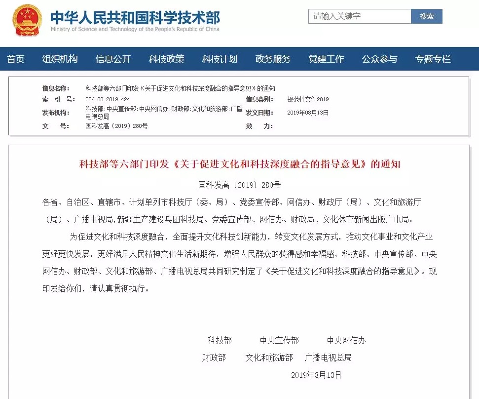 日前,科技部、中央宣传部、中央网信办、财政部、文化和旅游部、广播电视总局等六部门联合印发《关于促进文化和科技深度融合的指导意见》,促进文化和科技深度融合,全面提升文化科技创新能力,转变文化发展方式,推动文化事业和文化产业更好更快发展。