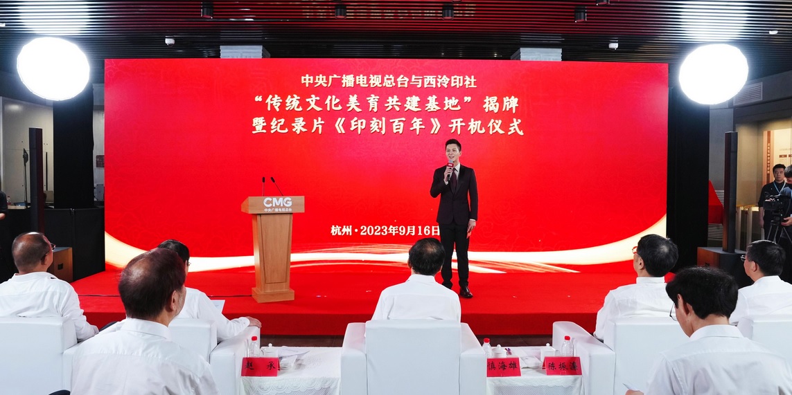 9月16日,中央广播电视总台与西泠印社“传统文化美育共建基地”揭牌暨纪录片《印刻百年》开机仪式在浙江杭州中国印学博物馆举行。中宣部副部长、中央广播电视总台台长慎海雄出席,并与浙江省委常委、宣传部部长赵承一起为共建基地揭牌。